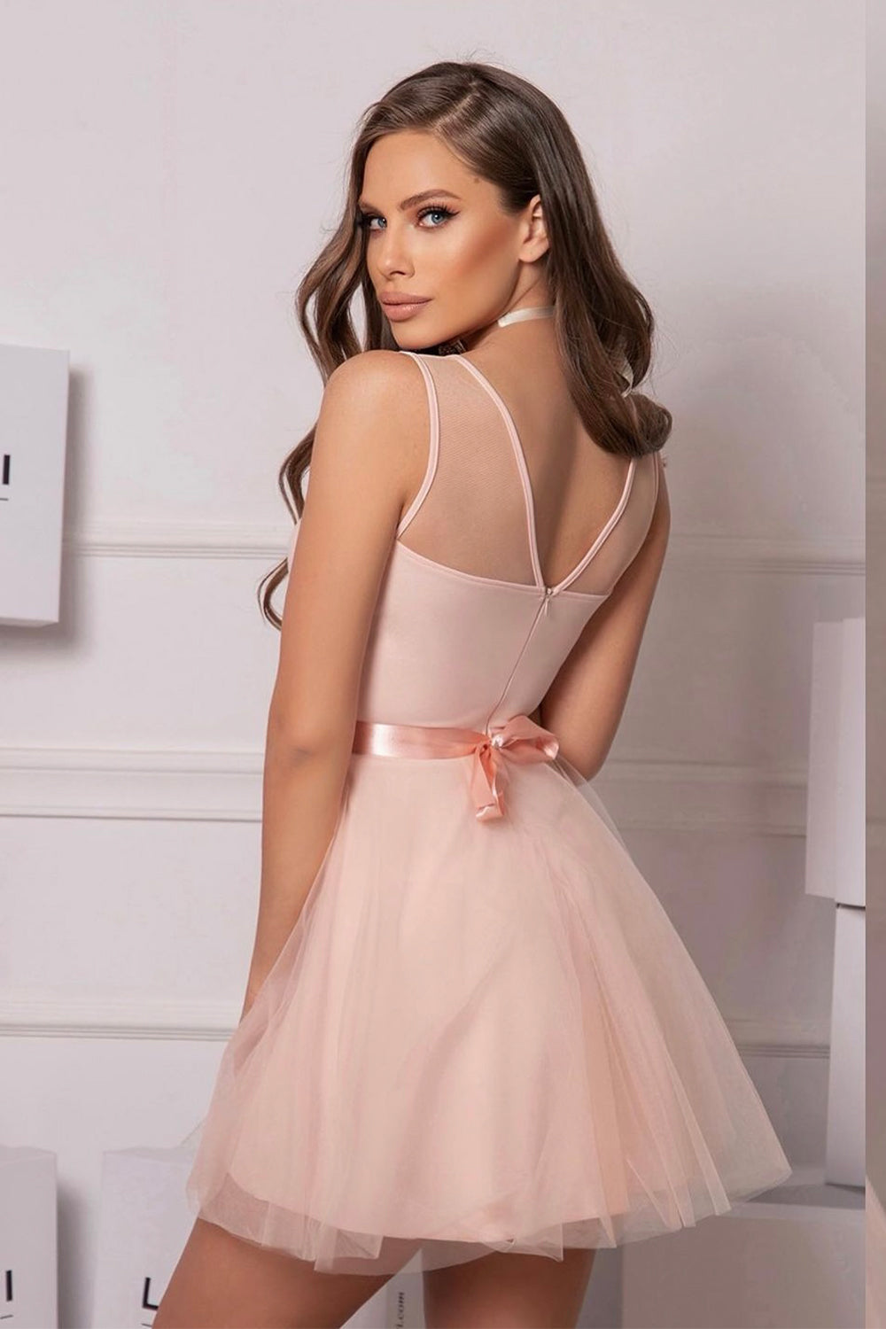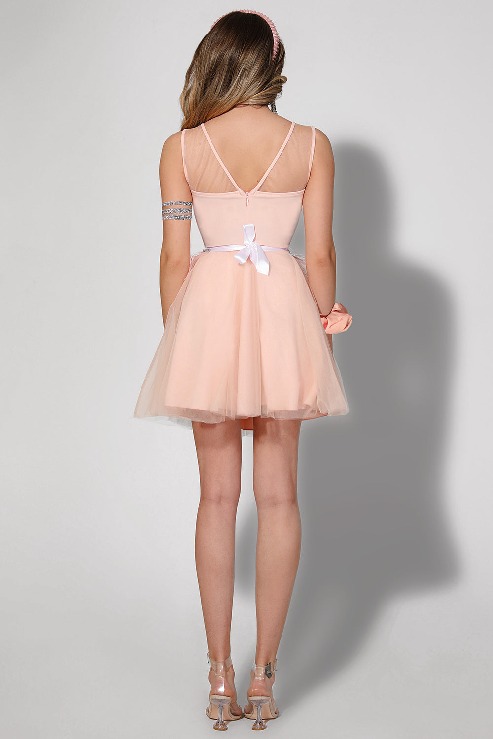 МИНИ РОКЛЯ DESSIE ТРИКО ТЮЛ НЕЖНА ПРАСКОВА