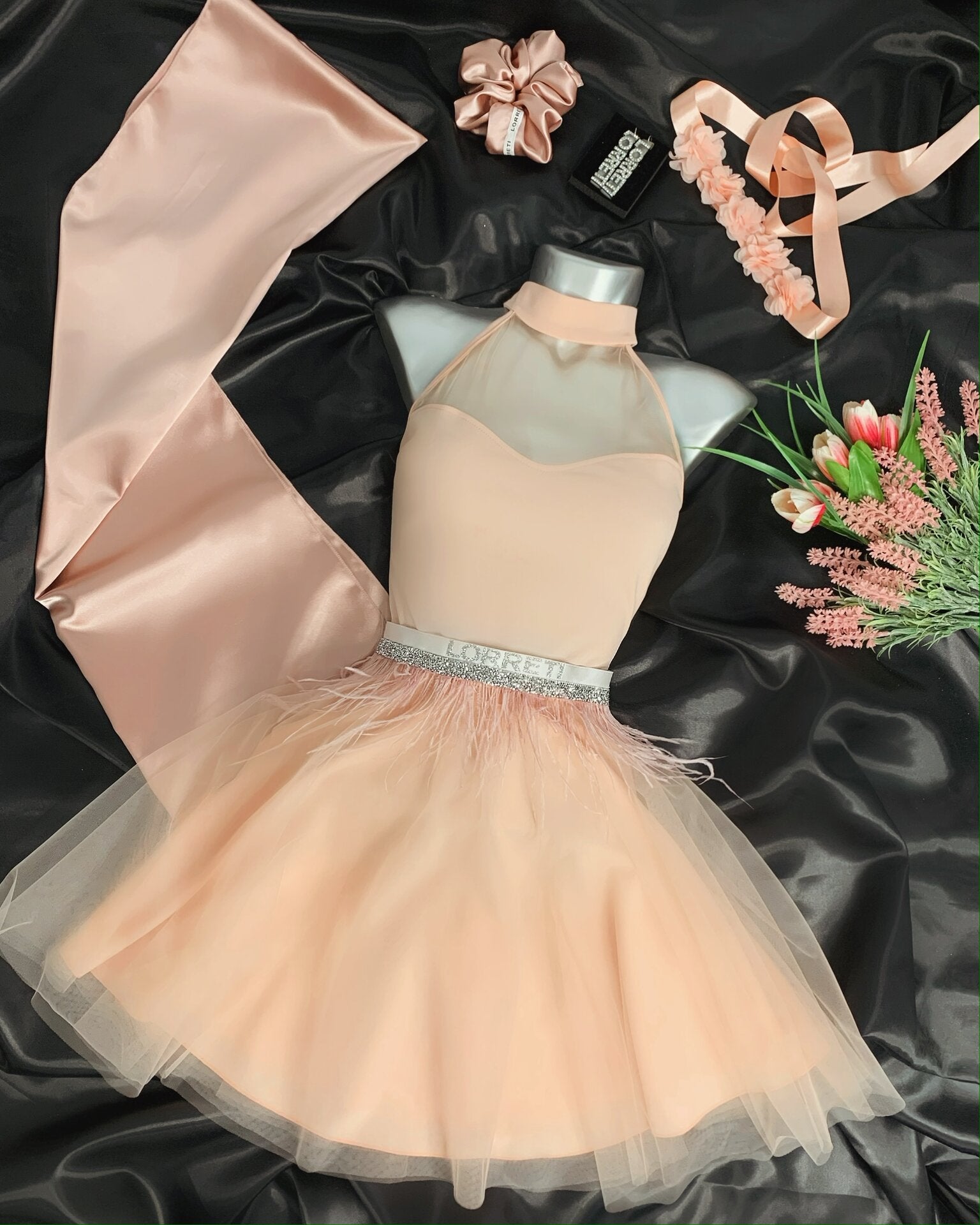 МИНИ РОКЛЯ NAOMI ТРИКО ТЮЛ НЕЖНА ПРАСКОВА