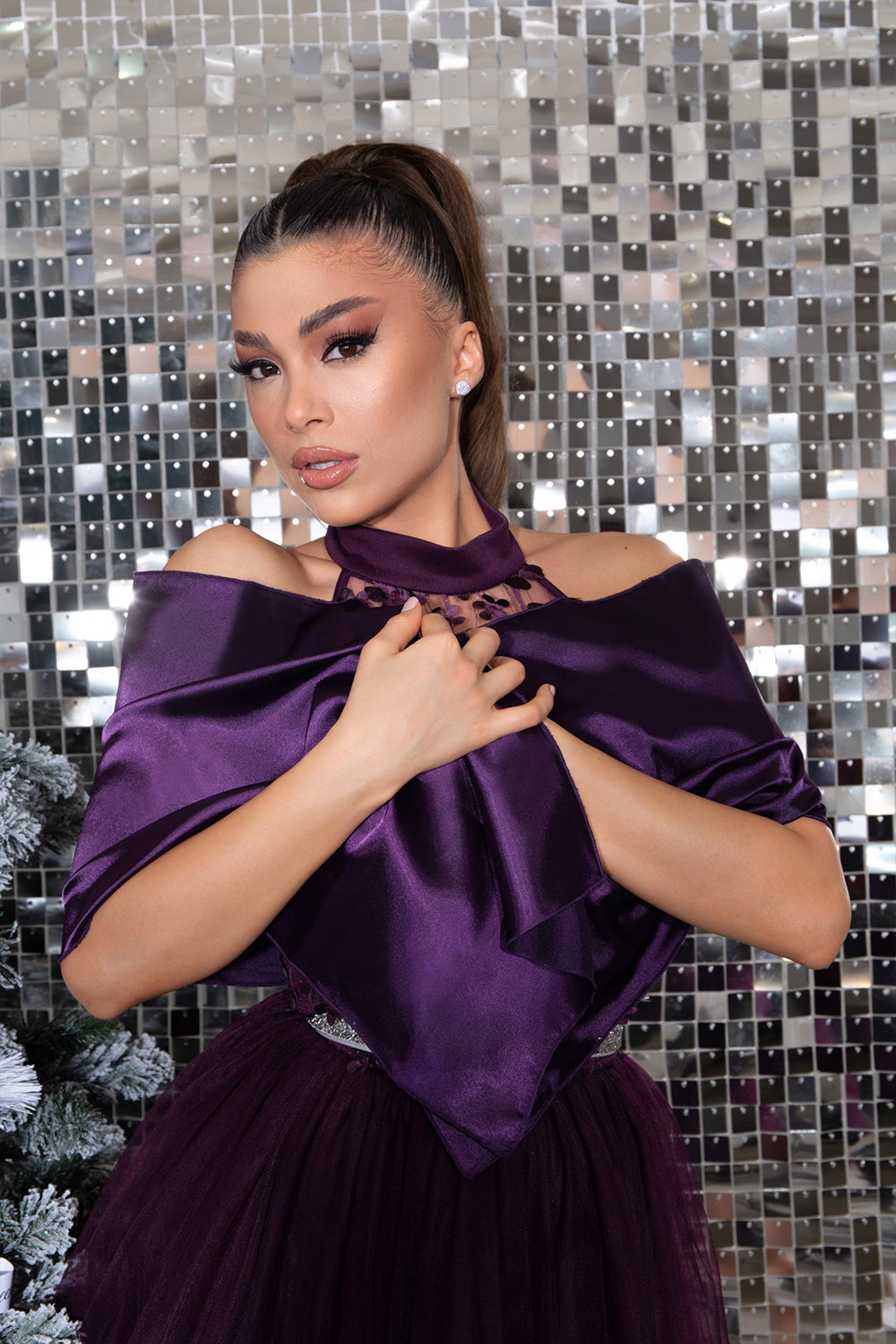 МИНИ РОКЛЯ NOVA ДАНТЕЛА ТЮЛ ТЪМНОЛИЛАВ