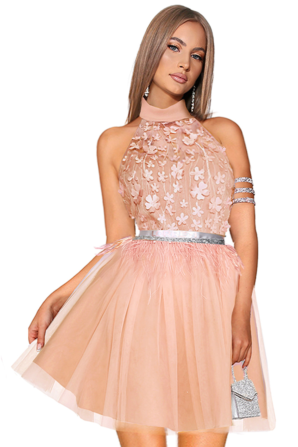 МИНИ РОКЛЯ NOVA ДАНТЕЛА ТЮЛ НЕЖНА ПРАСКОВА