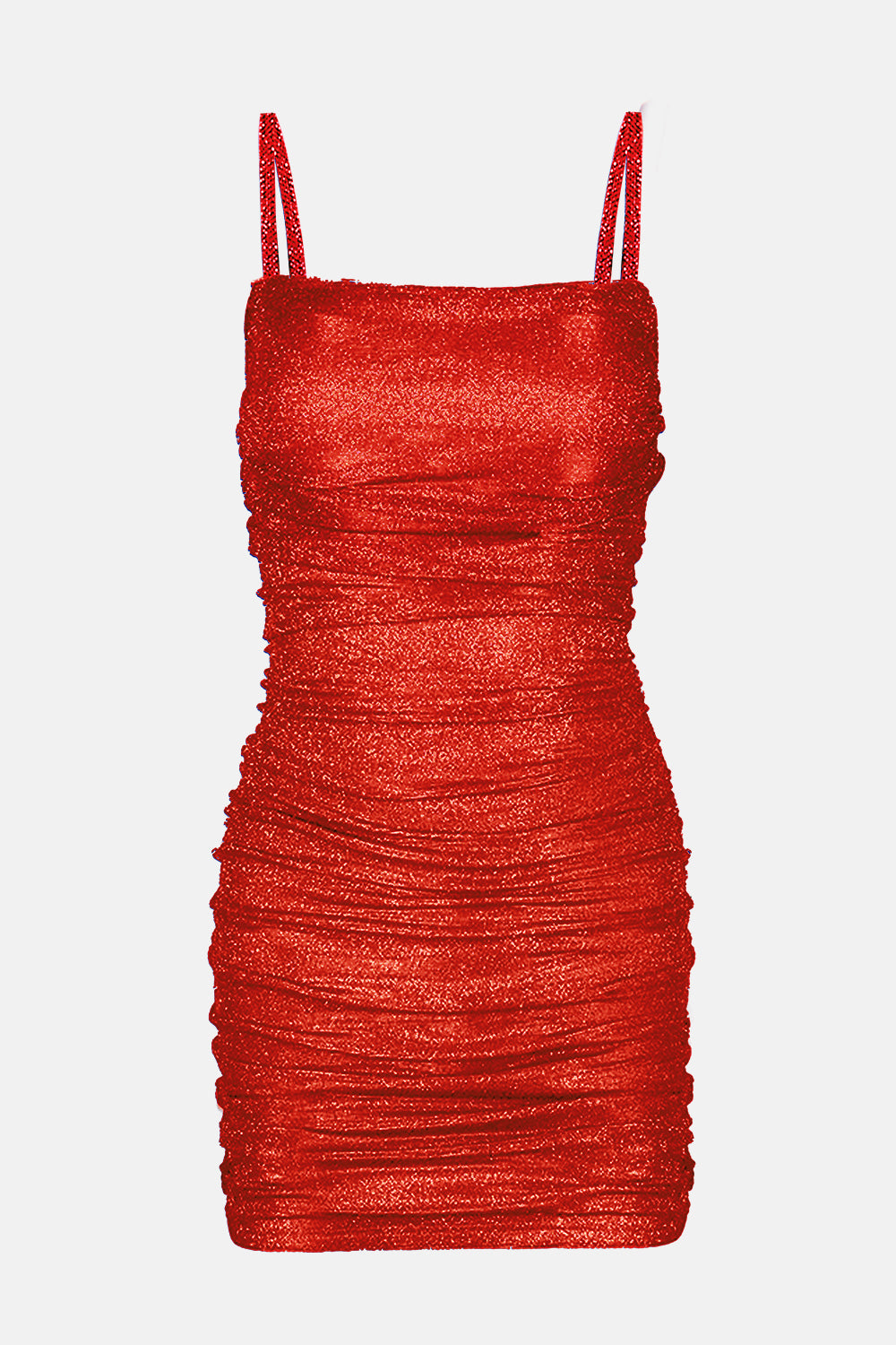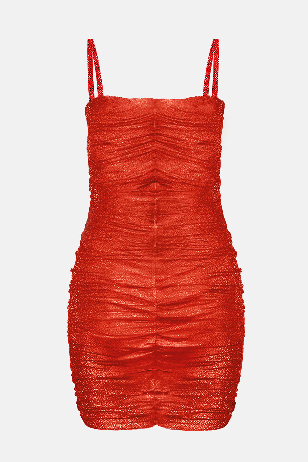 МИНИ РОКЛЯ SKY ЛАМЕ ЧЕРВЕН
