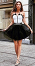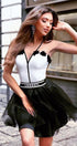 МИНИ РОКЛЯ ТРИКО ТЮЛ БЯЛ С ЧЕРЕН