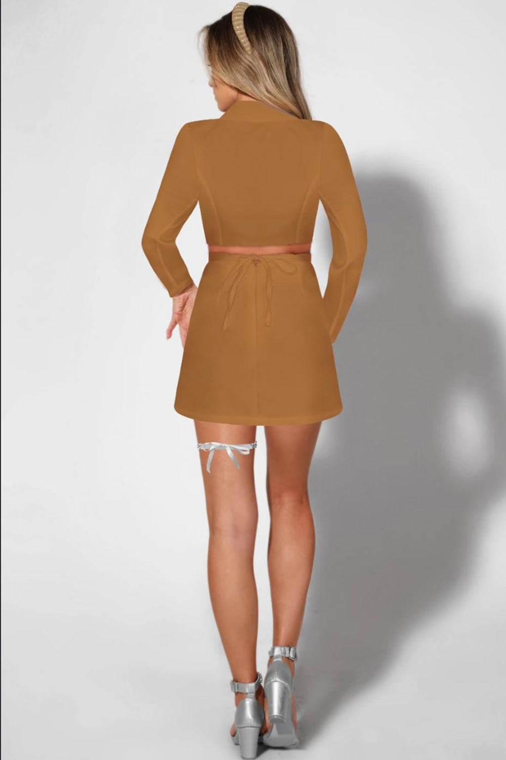 МИНИ СЕТ 2 ЧАСТИ БОЛЕРО С ПОЛА САТЕН СВЕТЪЛ ШОКОЛАД