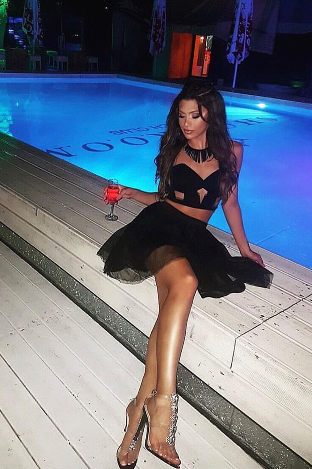 МИНИ СЕТ 2 ЧАСТИ ТОП С ПОЛА ТРИКО ТЮЛ ЧЕРЕН
