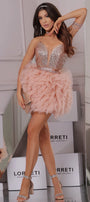 МИНИ СЕТ 2 ЧАСТИ ТОП С ПОЛА AMORE ТЮЛ БРОКАТ РОЗОВО ЗЛАТО