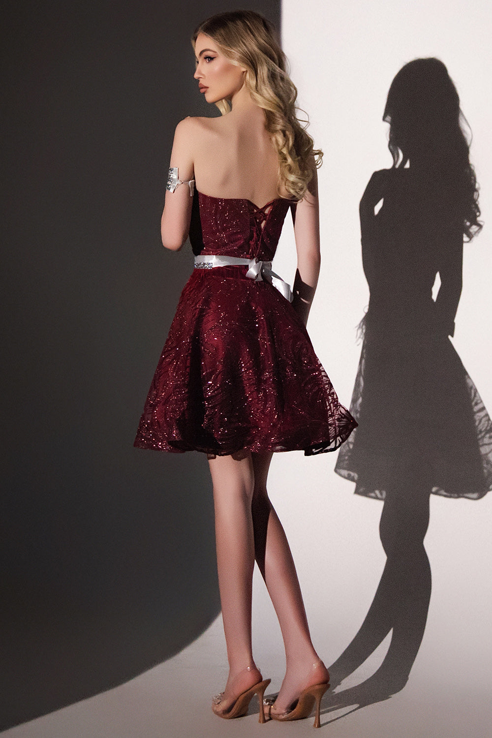 МИНИ СЕТ ТОП С ПОЛА ALBERTA ДАНТЕЛА ГЛИТЕР САТЕН БОРДО