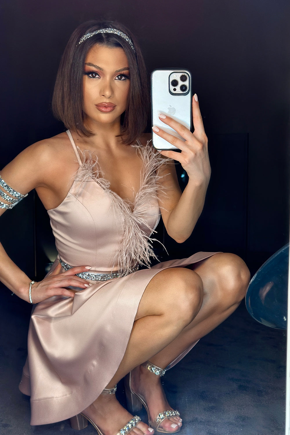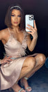 Моля, не поставяйте роклята в пералня с центрофуга или в сушилня, както и не прилагайте агресивно третиране, за да запазите нейния луксозен силует и качество.