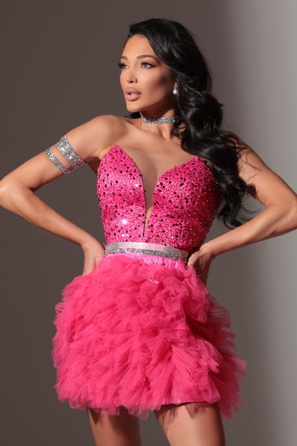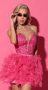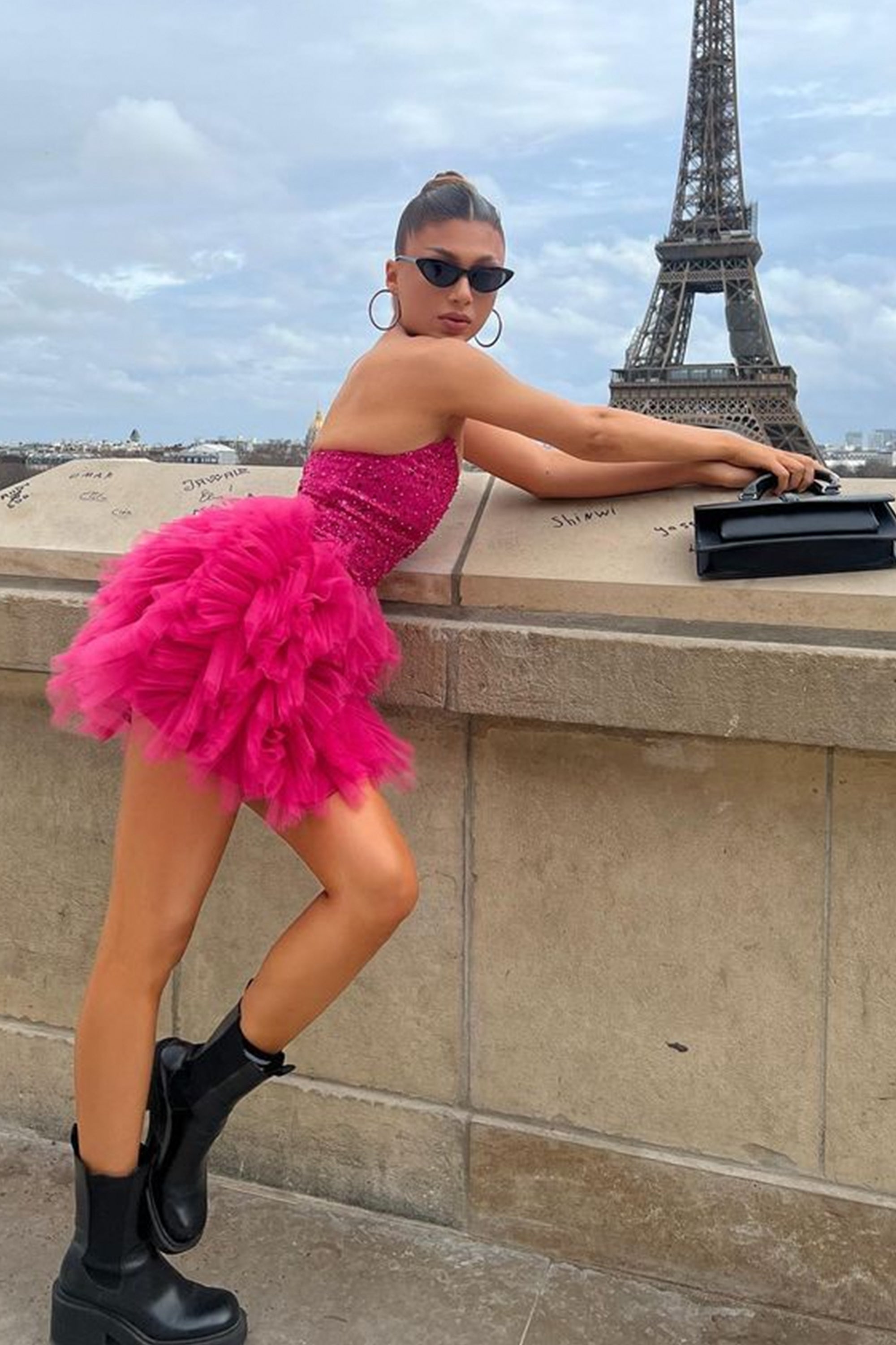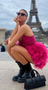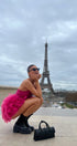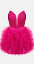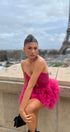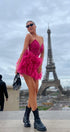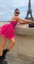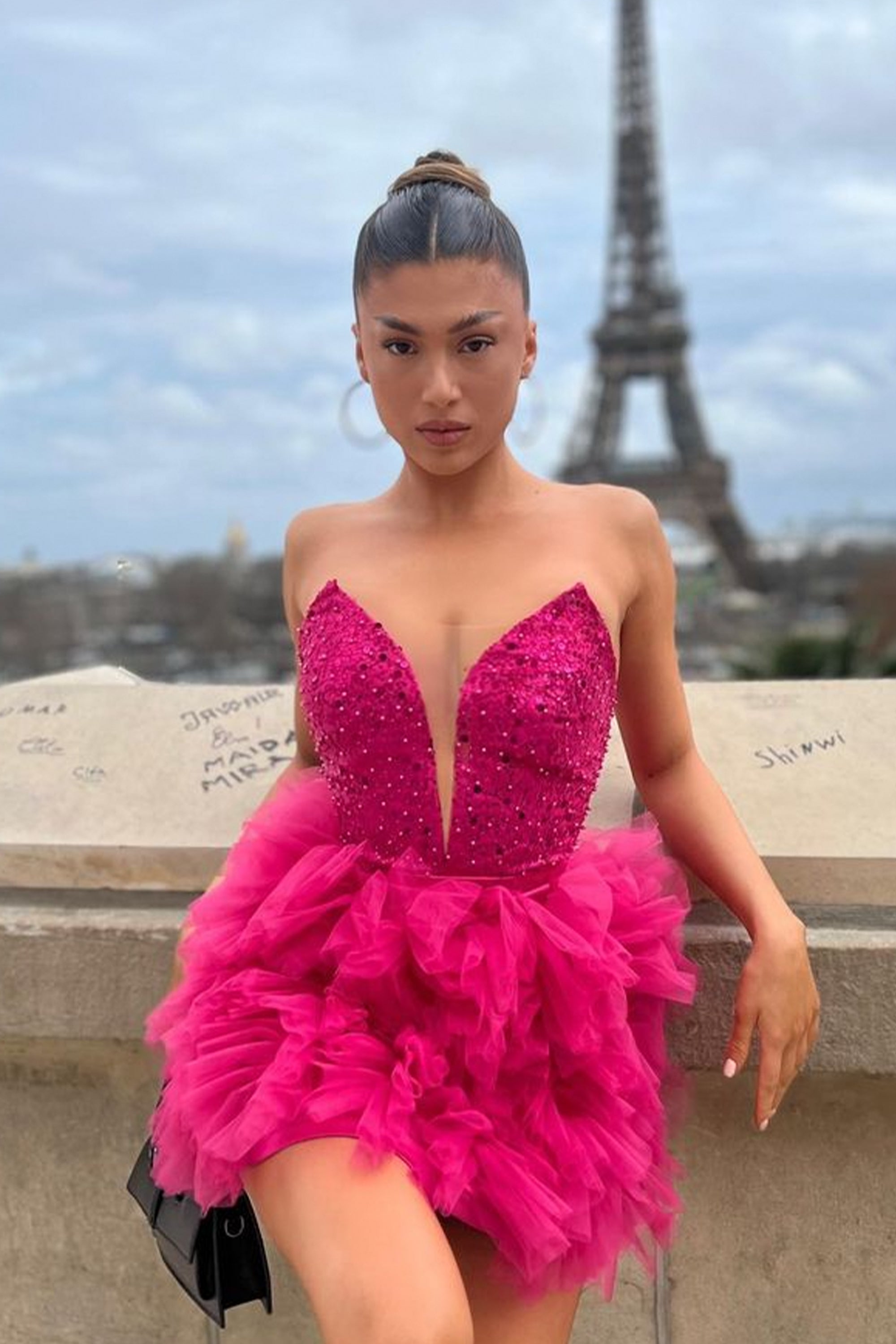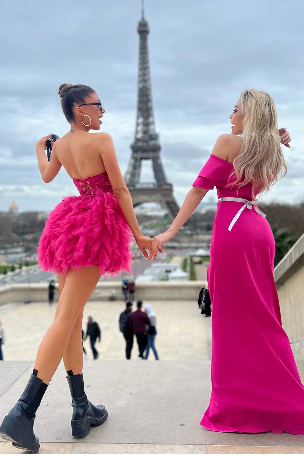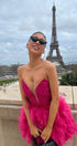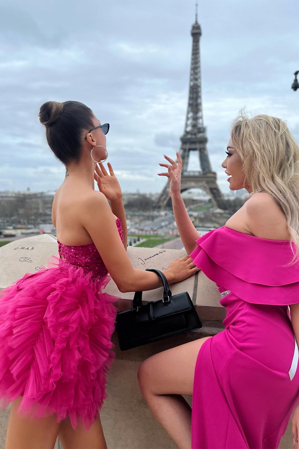 МИНИ СЕТ ТОП С ПОЛА AMORE ПАЙЕТИ ТЮЛ ЯРКО РОЗОВ