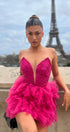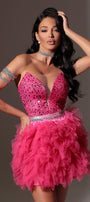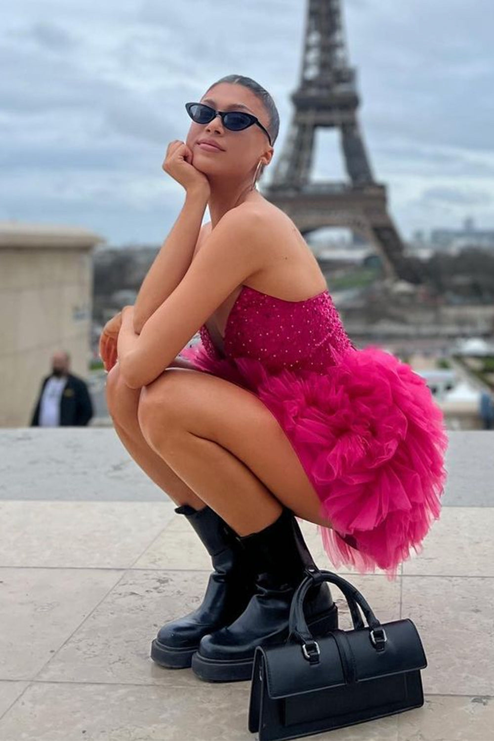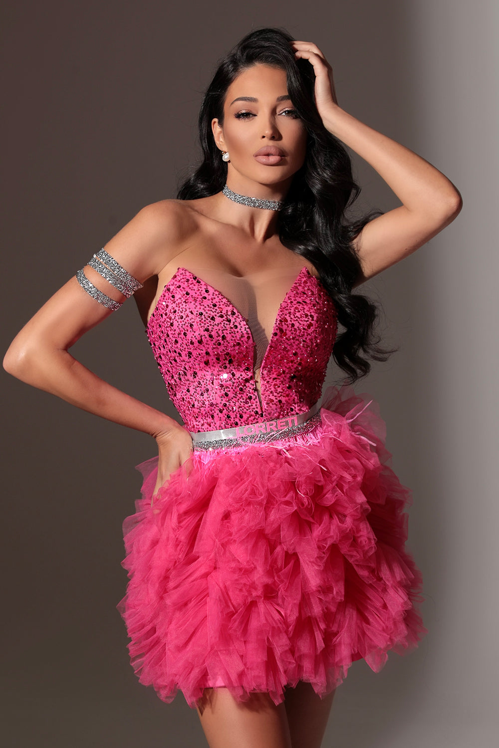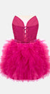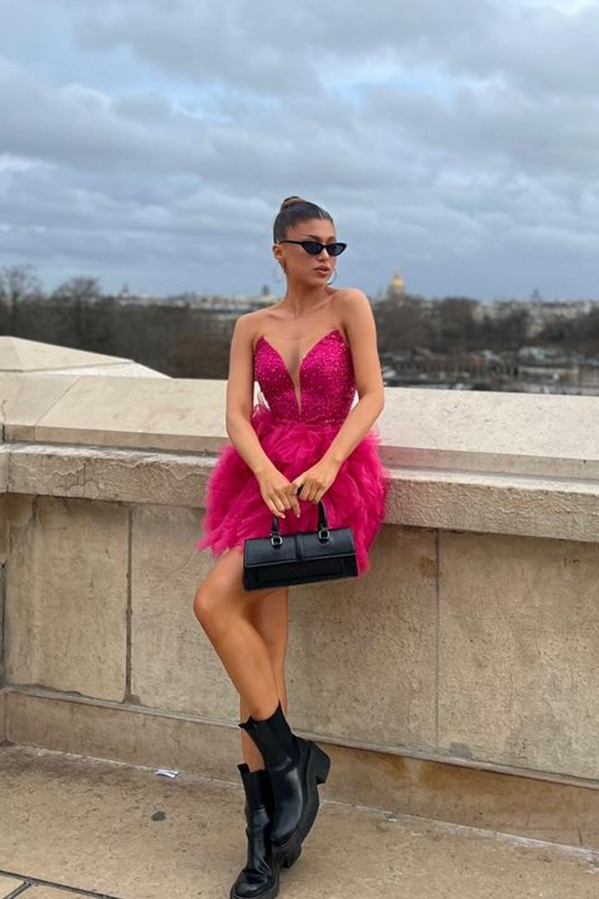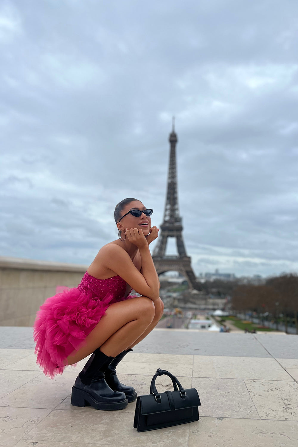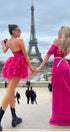 МИНИ СЕТ ТОП С ПОЛА AMORE ПАЙЕТИ ТЮЛ ЯРКО РОЗОВ