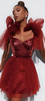 МИНИ СЕТ ТОП С ПОЛА BALLERINA ПАЙЕТИ ТЮЛ БОРДО