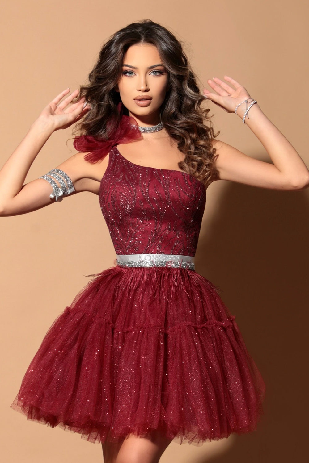 МИНИ СЕТ ТОП С ПОЛА BASTIANA ДАНТЕЛА ГЛИТЕР ТЮЛ БРОКАТ БОРДО