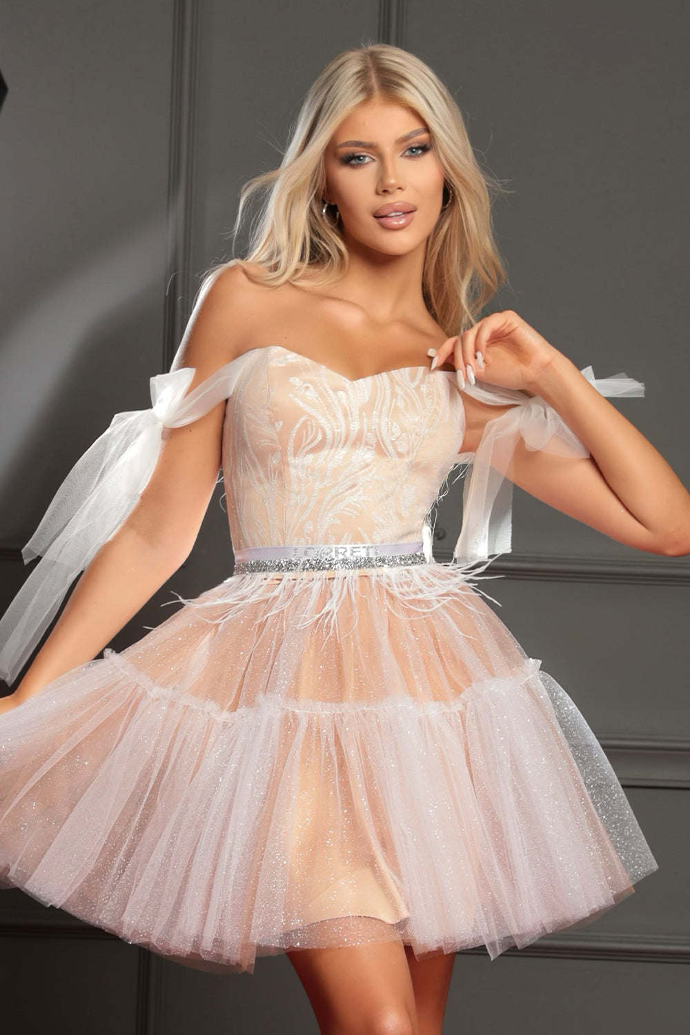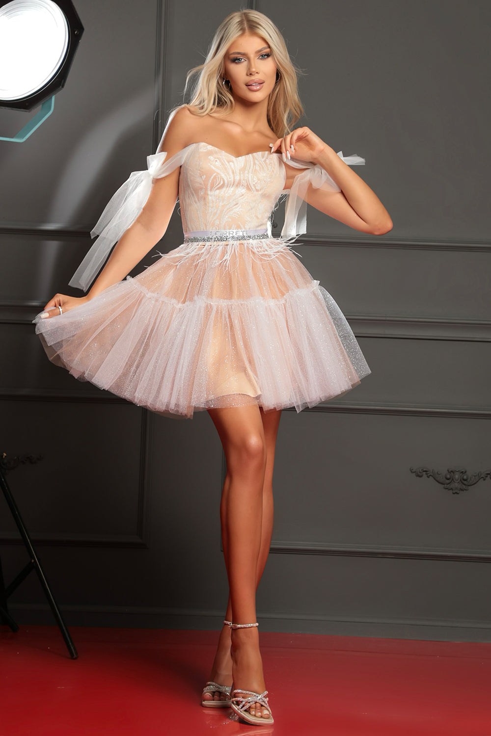 МИНИ СЕТ ТОП С ПОЛА BEVERLY ДАНТЕЛА ГЛИТЕР ТЮЛ БРОКАТ БЯЛ С НЮД