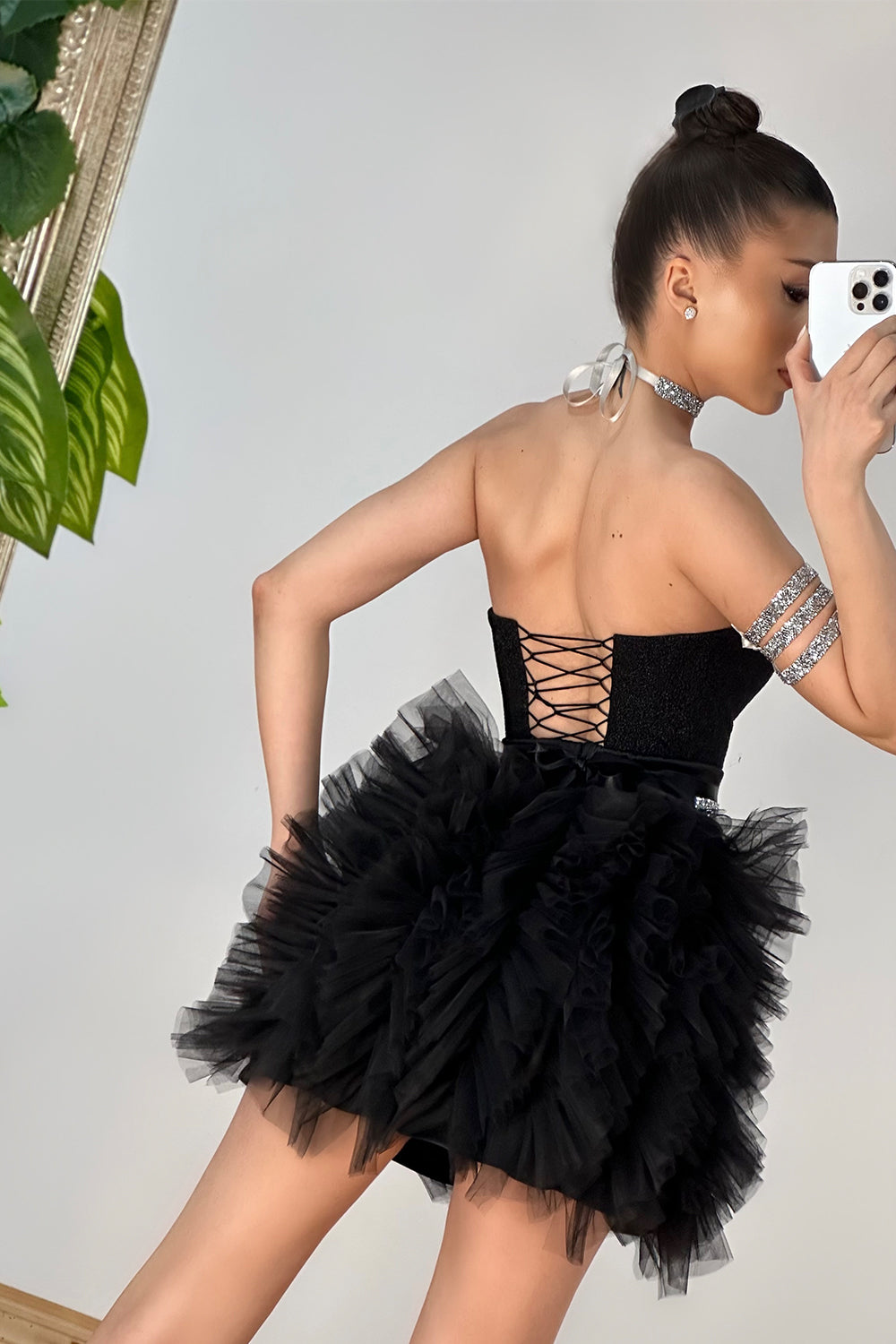 Моля, не поставяйте роклята в пералня с центрофуга или в сушилня, както и не прилагайте агресивно третиране, за да запазите нейния луксозен силует и качество.