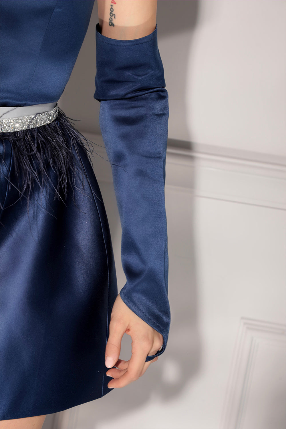 МИНИ СЕТ ТОП С ПОЛА DAYANA САТЕН КАМЪНИ ТЪМНО СИН