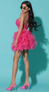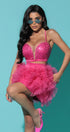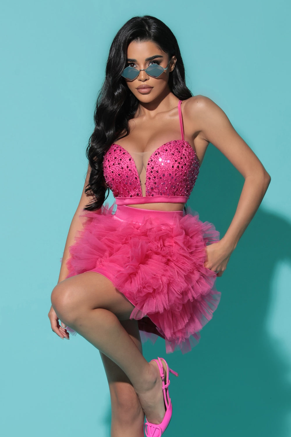 МИНИ СЕТ ТОП С ПОЛА DEMI ПАЙЕТИ ТЮЛ ЯРКО РОЗОВ