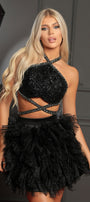 МИНИ СЕТ ТОП С ПОЛА DOLORES ПАЙЕТИ КАМЪНИ ТЮЛ БРОКАТ ЧЕРЕН