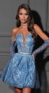 МИНИ СЕТ ТОП С ПОЛА GENEVA ДАНТЕЛА ГЛИТЕР КАМЪНИ СВЕТЛО СИН
