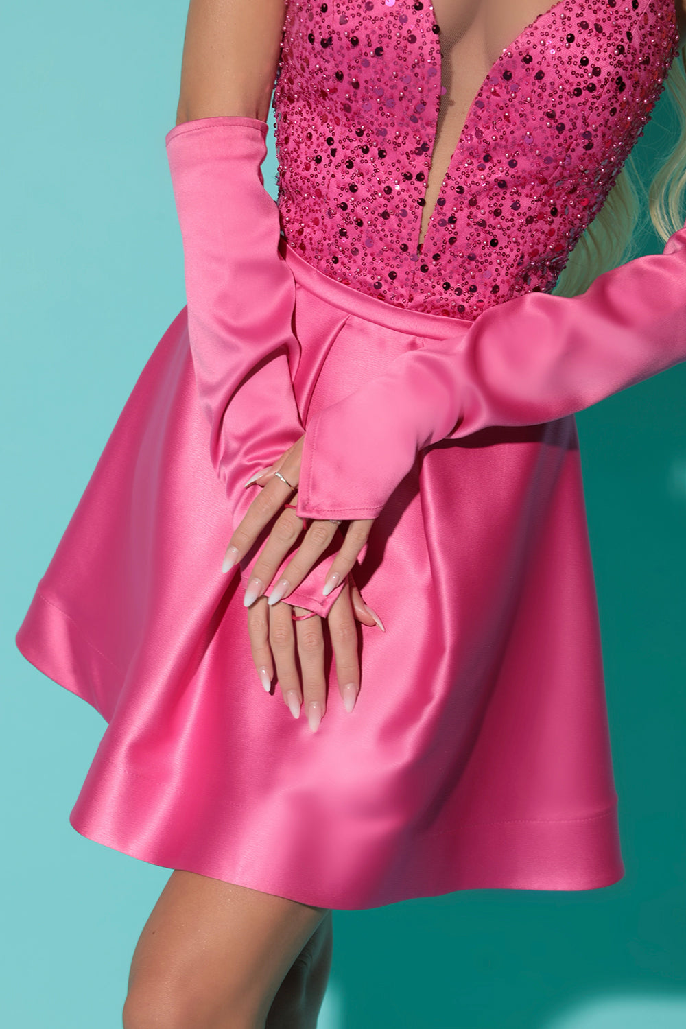 МИНИ СЕТ ТОП С ПОЛА GIANNA ПАЙЕТИ САТЕН ЯРКО РОЗОВ