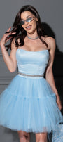 МИНИ СЕТ ТОП С ПОЛА JACQUELINE САТЕН ТЮЛ СВЕТЛО СИН