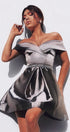 Моля, не поставяйте роклята в пералня с центрофуга или в сушилня, както и не прилагайте агресивно третиране, за да запазите нейния луксозен силует и качество.