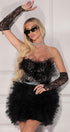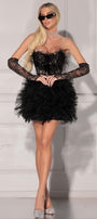 МИНИ СЕТ ТОП С ПОЛА KRISTEN ДАНТЕЛА ГЛИТЕР ПЕРА ТЮЛ ЧЕРЕН С НЮД