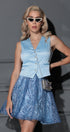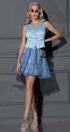 МИНИ СЕТ ТОП С ПОЛА LEXI САТЕН ДАНТЕЛА ГЛИТЕР СВЕТЛО СИН