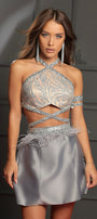 МИНИ СЕТ ТОП С ПОЛА MISTY ДАНТЕЛА ГЛИТЕР КАМЪНИ САТЕН СРЕБЪРЕН С НЮД