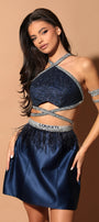МИНИ СЕТ ТОП С ПОЛА MISTY ДАНТЕЛА ГЛИТЕР САТЕН КАМЪНИ ТЪМНО СИН