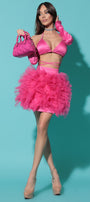 МИНИ СЕТ ТОП С ПОЛА NANCY САТЕН ТЮЛ ЯРКО РОЗОВ