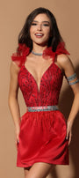 МИНИ СЕТ ТОП С ПОЛА NATALY ДАНТЕЛА ГЛИТЕР САТЕН ЧЕРВЕН
