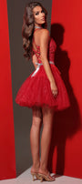 МИНИ СЕТ ТОП С ПОЛА RAYA ДАНТЕЛА ГЛИТЕР ТЮЛ БРОКАТ ЧЕРВЕН