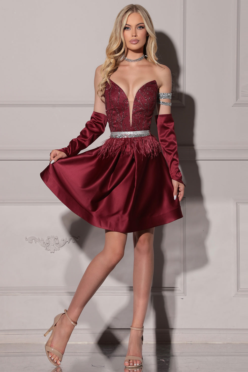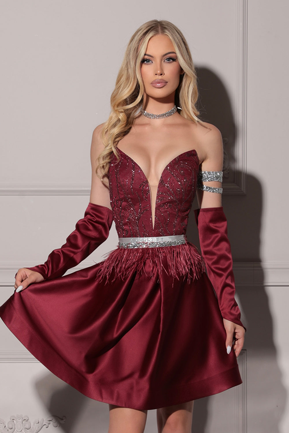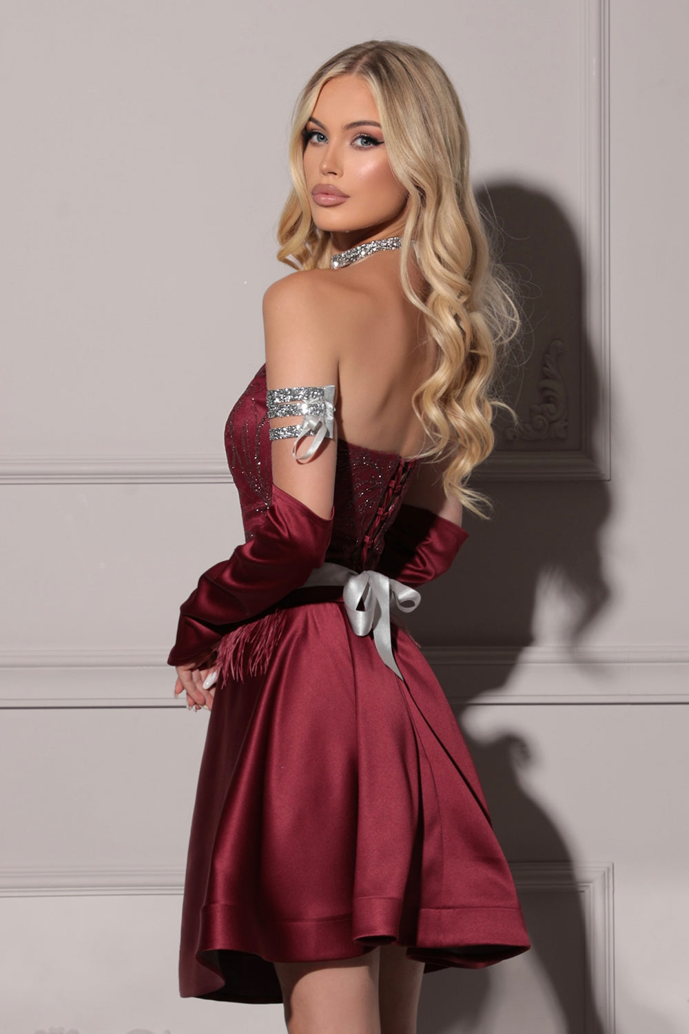 Моля, не поставяйте роклята в пералня с центрофуга или в сушилня, както и не прилагайте агресивно третиране, за да запазите нейния луксозен силует и качество.