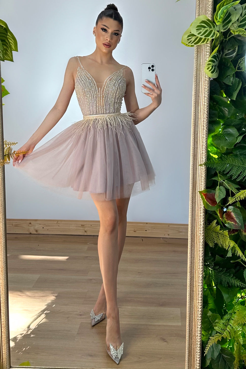 Моля, не поставяйте роклята в пералня с центрофуга или в сушилня, както и не прилагайте агресивно третиране, за да запазите нейния луксозен силует и качество.