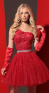 МИНИ СЕТ ТОП С ПОЛА SEVYN ДАНТЕЛА ГЛИТЕР ТЮЛ БРОКАТ ЧЕРВЕН