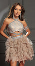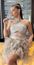 МИНИ СЕТ ТОП С ПОЛА SHARPAY ДАНТЕЛА ГЛИТЕР КАМЪНИ ТЮЛ БРОКАТ СРЕБЪРЕН С НЮД