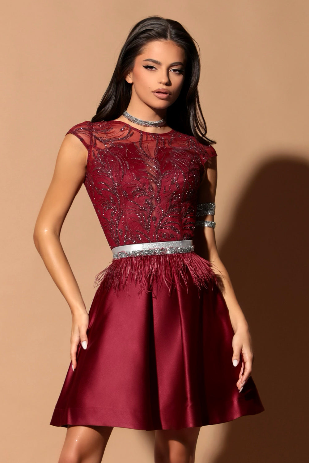 МИНИ СЕТ ТОП С ПОЛА SHIVANA ДАНТЕЛА ГЛИТЕР САТЕН БОРДО