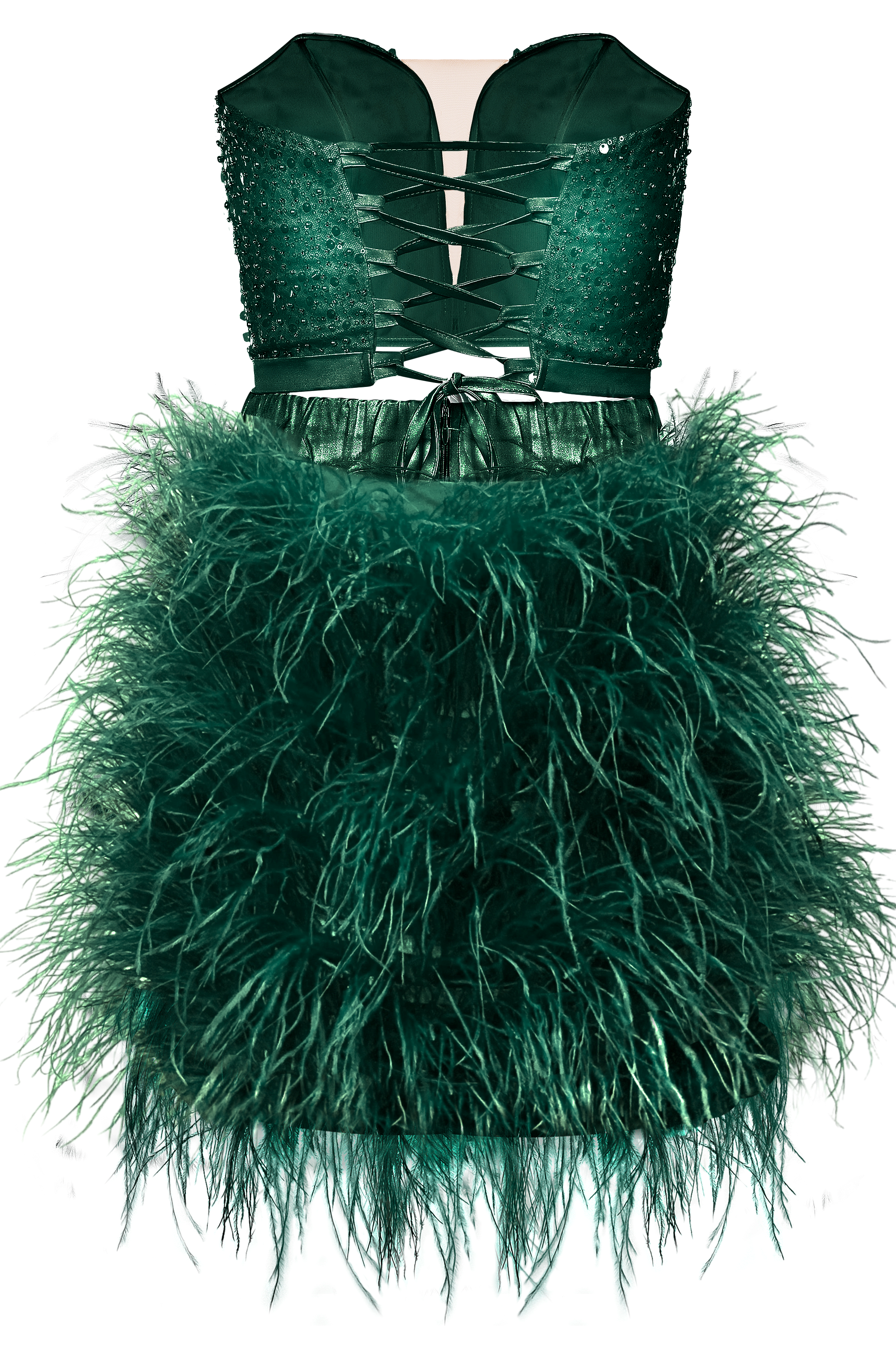 МИНИ СЕТ ТОП С ПОЛА TINKERBELL ПАЙЕТИ ПЕРА ТЪМНО ЗЕЛЕН