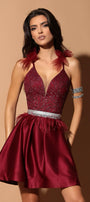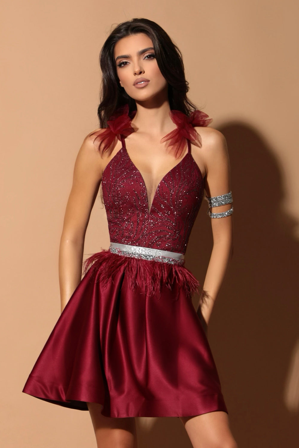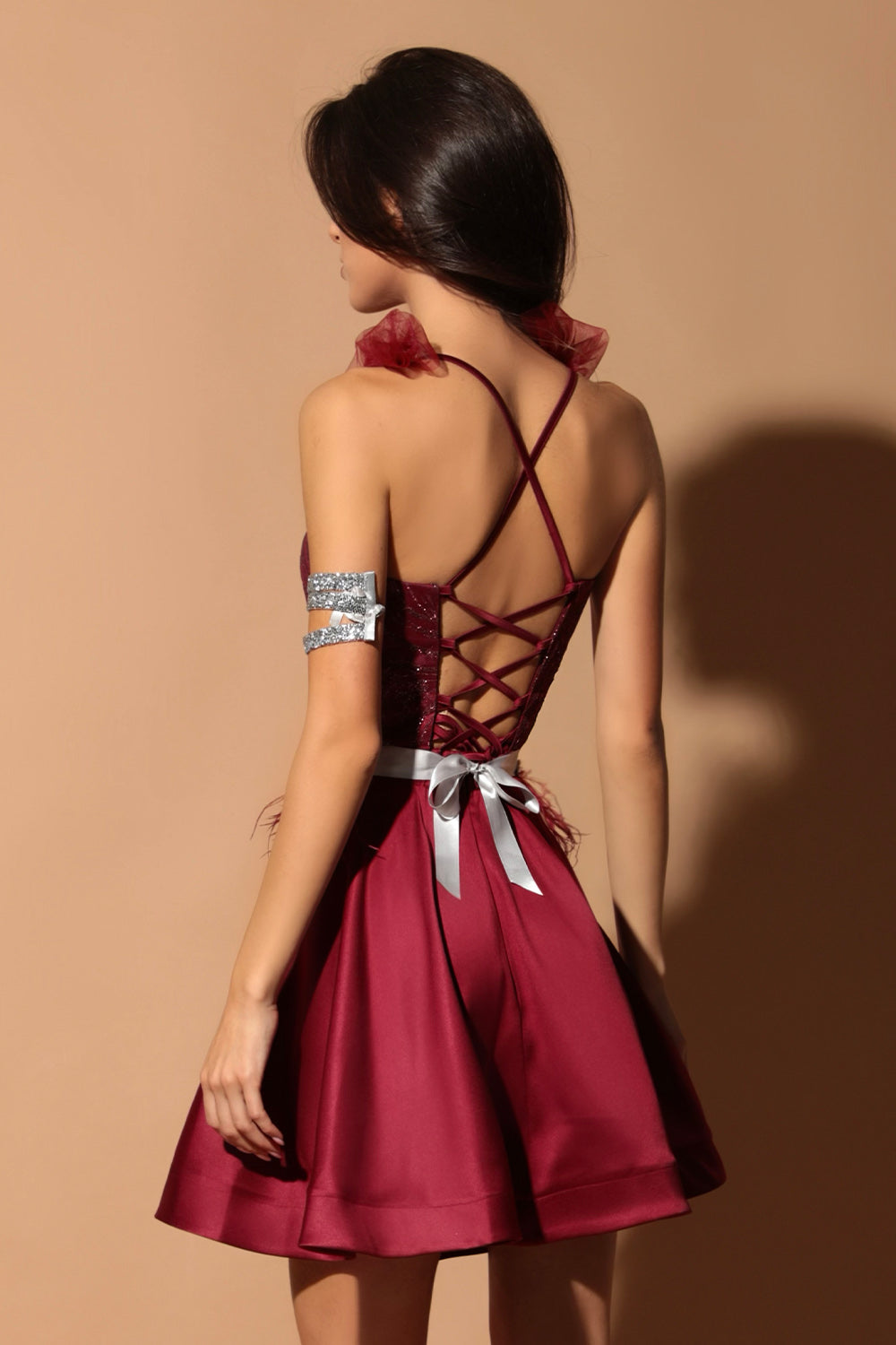 МИНИ СЕТ ТОП С ПОЛА UNONNA ДАНТЕЛА ГЛИТЕР САТЕН БОРДО