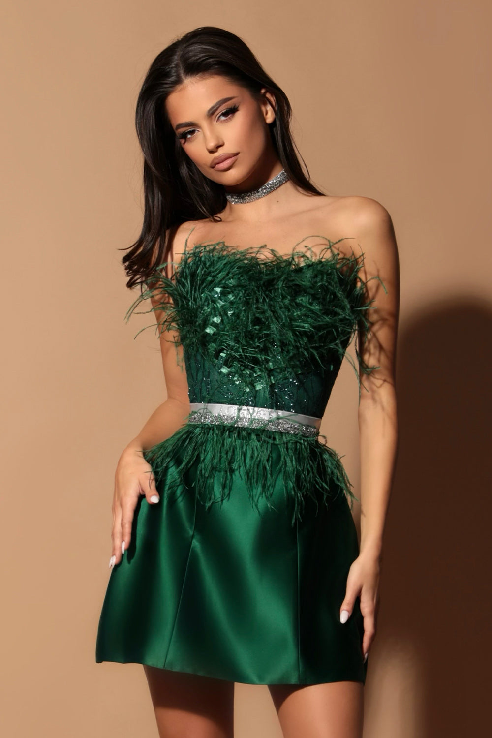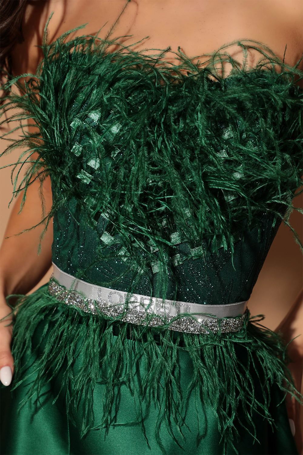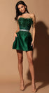 МИНИ СЕТ ТОП С ПОЛА VEDA ДАНТЕЛА ГЛИТЕР ПЕРА САТЕН ТЪМНО ЗЕЛЕН