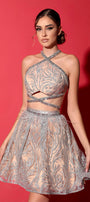 МИНИ СЕТ ТОП С ПОЛА SYBELLA КАМЪНИ ДАНТЕЛА ГЛИТЕР СРЕБЪРЕН С НЮД