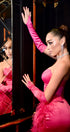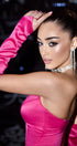 Miss Bulgaria ДЪЛЪГ СЕТ ТОП С ПОЛА САТЕН ПЕРА ЯРКО РОЗОВ