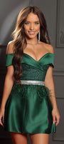 MINI SET TOP CU FUSTA ANTINEA DANTELA GLITTER SATIN VERDE INCHIS