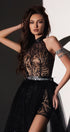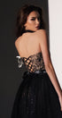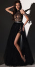 MAXI SET TOP CU PANTALONI ȘI MANTIE ELSIE DANTELA GLITTER BROCADĂ DE TUL NEAGRA ȘI NUDE