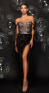 MAXI SET TOP CU FUSTA LESLIE DANTELA GLITTER PENE ARGINTIU ȘI NUDE