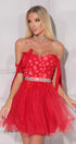 MINI ROCHIE MARY DANTELA TUL ROSU